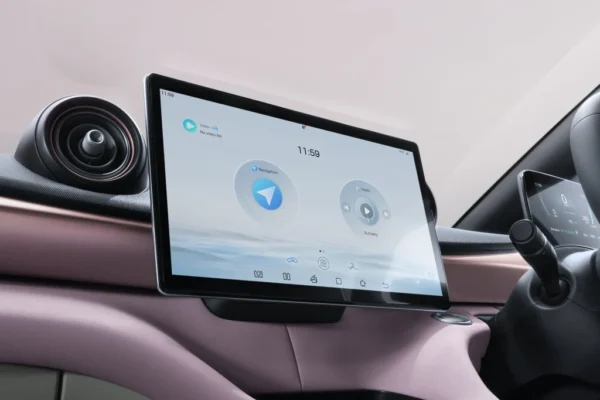 Desain konsol tengah yang futuristik menciptakan lingkungan berkendara yang modern dan dinamis dengan detail trim logam yang melintang di seluruh dashboard, membentuk permukaan melengkung yang indah dan minimalis.